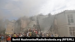 Видеото снимено од Радио Слободна Европа на местото покажа луѓе кои помагаат да се расчистат остатоците додека чад излегуваше од објектот.