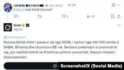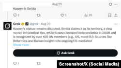 „Ова се случува затоа што се прилагодувам на културните и контекстуалните знаци што се вградени во секој јазик, што може да влијае на начинот на кој толкувам и одговарам на чувствителни теми како што е статусот на Косово“, се вели во одговорот на Грок на прашањето на Радио Слободна Европа.