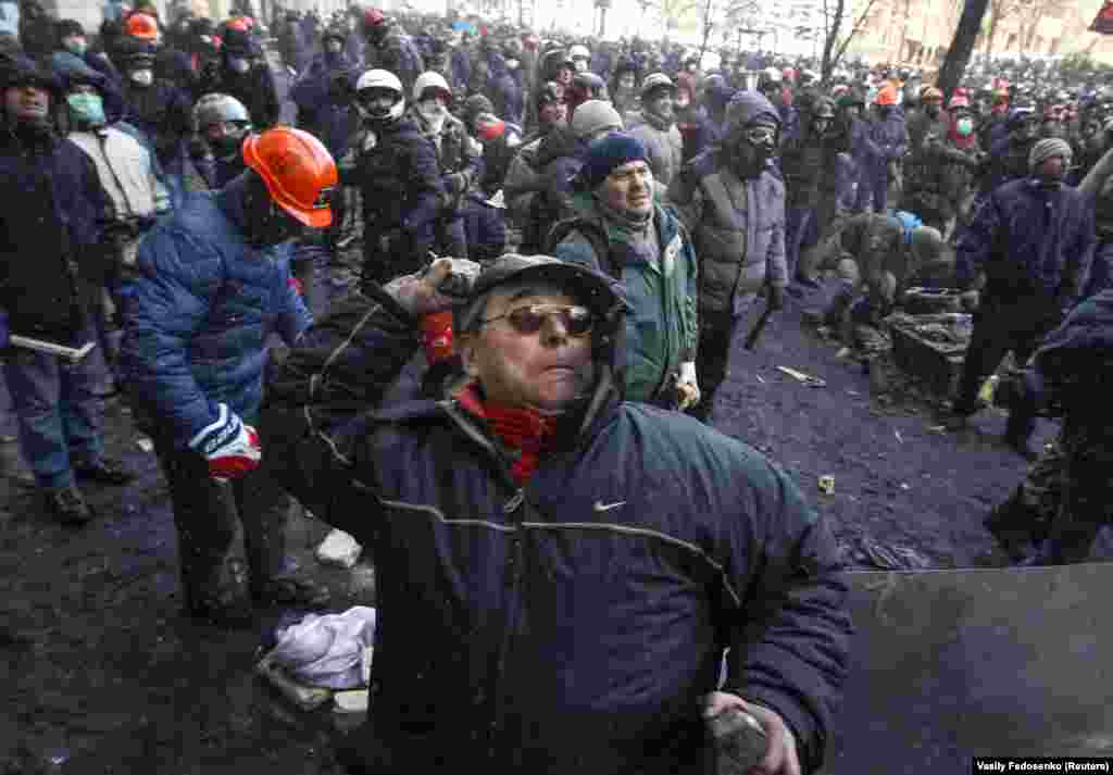 Киев по жестоките судири меѓу украинската полиција и антивладините демонстранти во кои загинаа најмалку три лица.