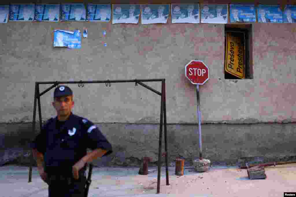 Мапа на македонско - српската граница во полициската станица во Прешево, со рутите на илегалните премини на мигрантите.