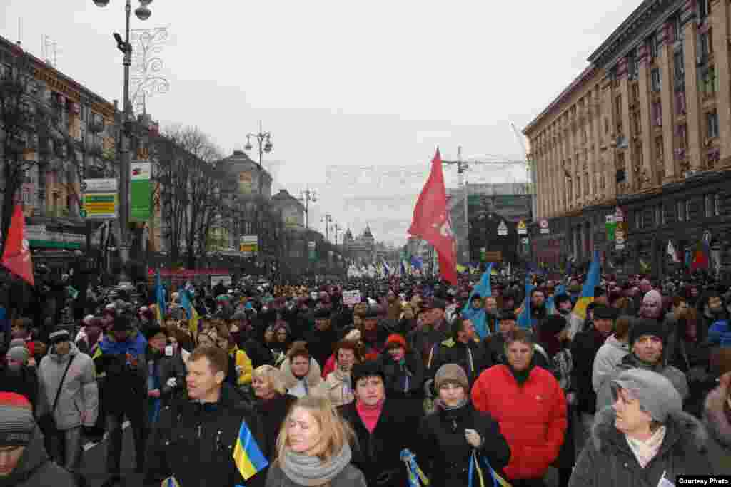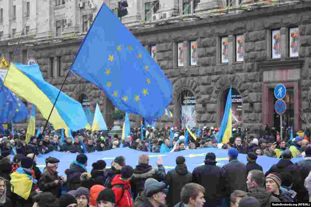 Поддржувачите на Европската унија ги продолжуваат протестите во Киев против владата на претседателот Виктор Јанукович. Тензиите пораснаа откако полицијата брутално ги прекина протестите на 30 ноември.